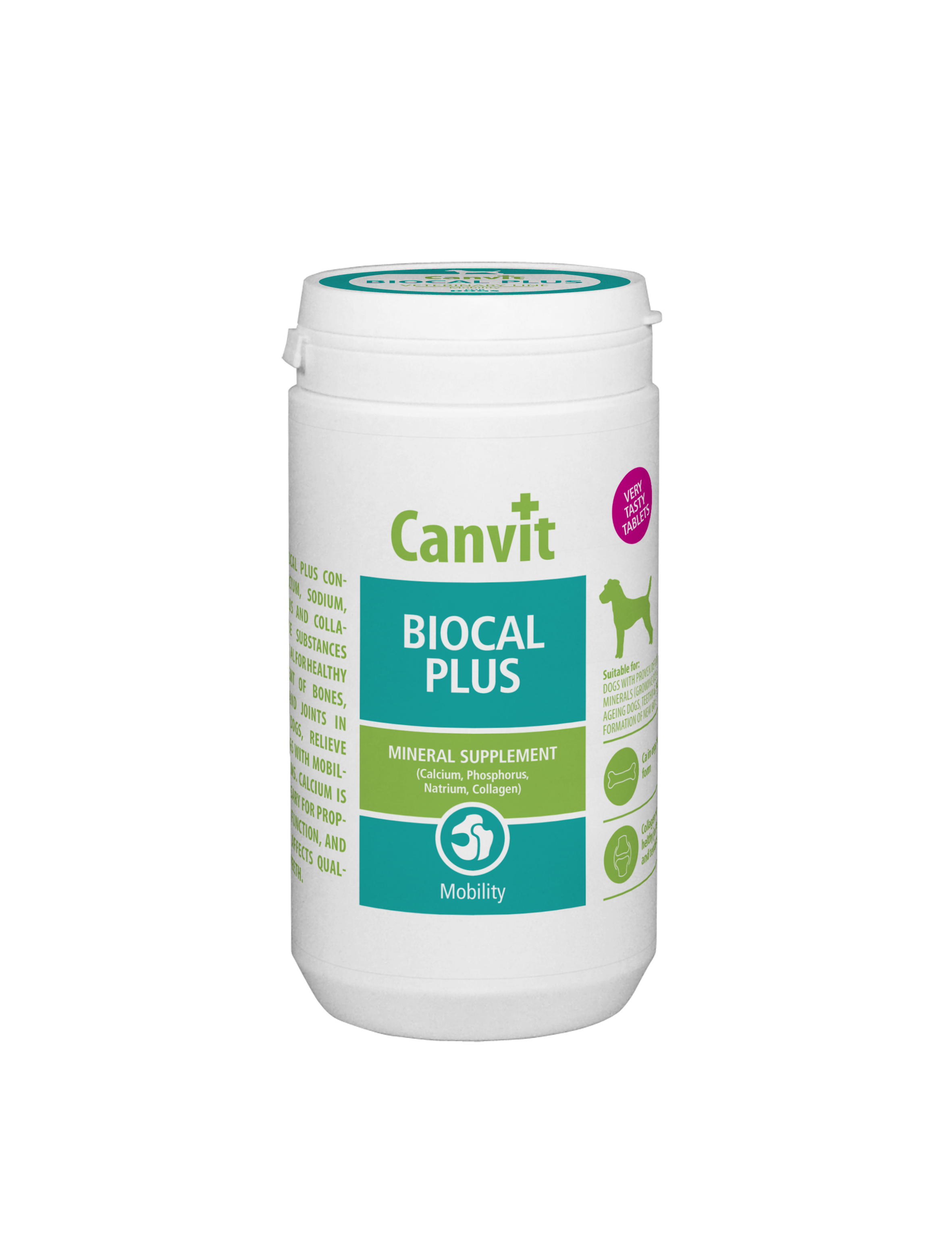 Canvit Biocal Plus zawiera wapń, sód, fosfor i kolagen. Substancje te są niezbędne dla zdrowego rozwoju kości, ścięgien i stawów u psów rosnących, przynosi ulgę psom starczym z problemami układu ruchu. Wapń jest także niezbędny dla prawidłowego utrzymania funkcji mięśni i pozytywnie wpływa na jakość i zdrowie zębów.