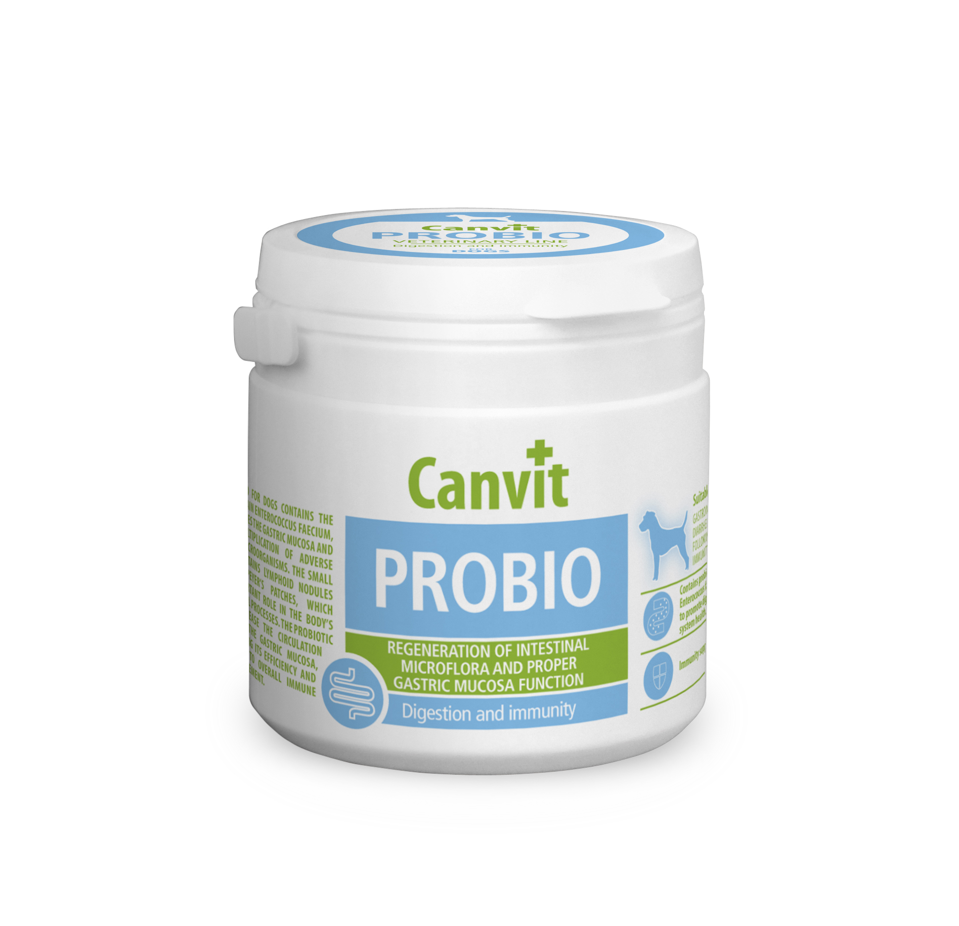 Canvit Probio dla psów zawiera szczepy bakterii Enetrococcus faecium, które kolonizują błonę śluzową przewodu pokarmowego i zapobiegają namnażaniu mikroorganizmów bakteryjnych ze środowiska zewnętrznego. Jelito cienkie zawiera grudki chłonne zwane kępkami Peyera, które odgrywają ważną rolę w procesach immunologicznych organizmu. Preparat zawiera także biologicznie dostępne aktywowane beta-glukany, które stymulują makrofagi (pierwsze komórki odpowiedzi immunologicznej) do efektywniejszej odpowiedzi immunologicznej.