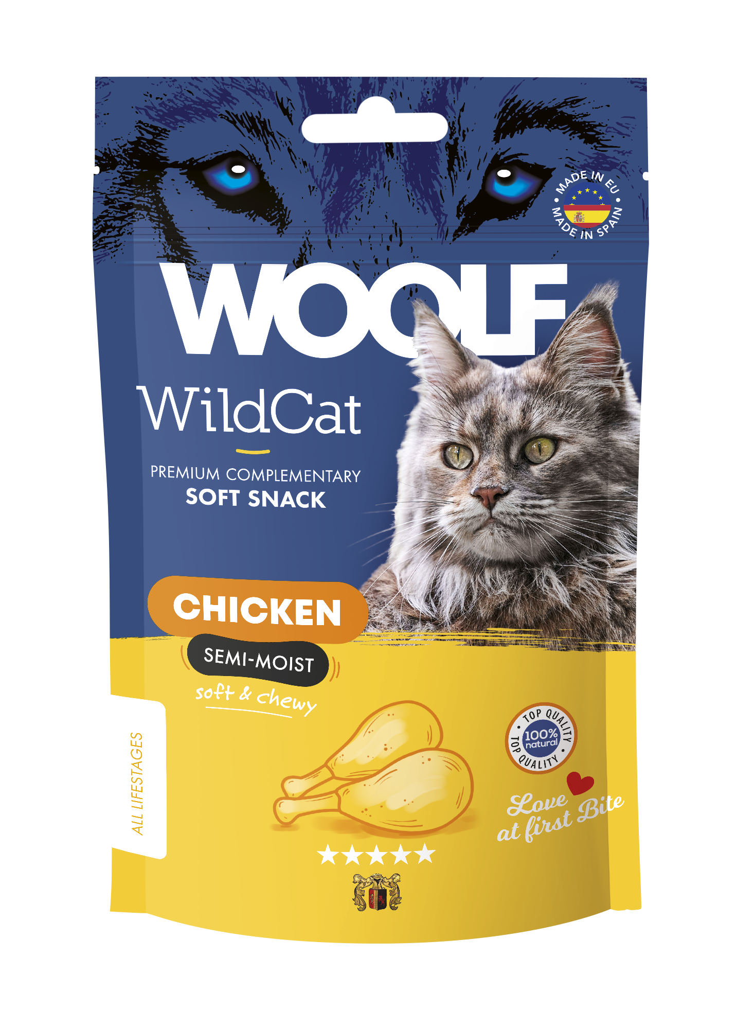 Woolf WildCat Soft Snack Chicken to delikatne i soczyste przysmaki dla kotów z kurczakiem.